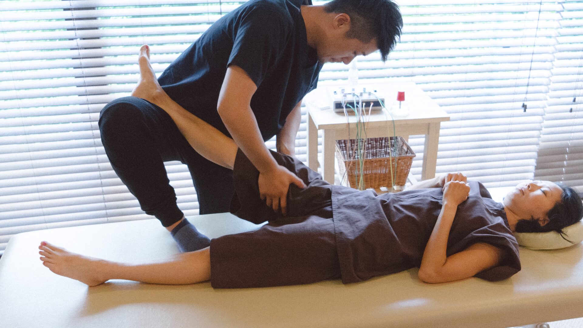 服装につきましてはジャージやスウェットなど体を締め付けない動きやすい服装でお待ちいただけますと、よりリラックスして施術を受けていただけます。