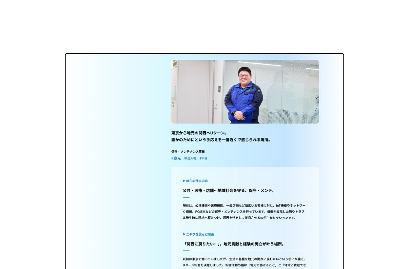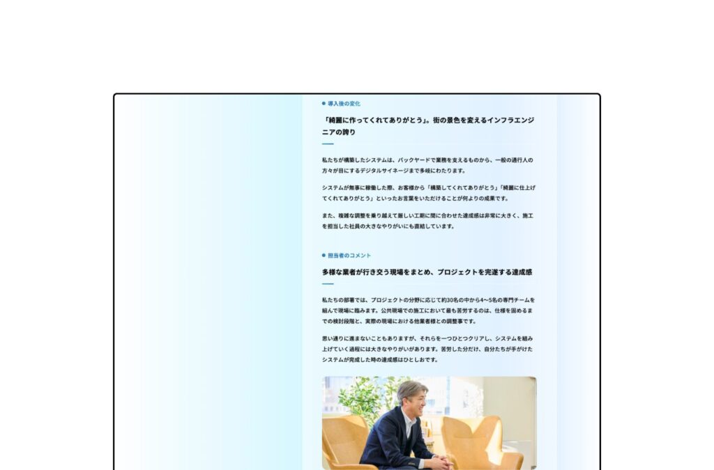 また、インタビューやオフィス・現場の撮影が必要な場合は、全国どこへでも出張対応いたします。地方企業様特有の知名度不足やU・Iターン採用などの課題解決実績も多数ございます。